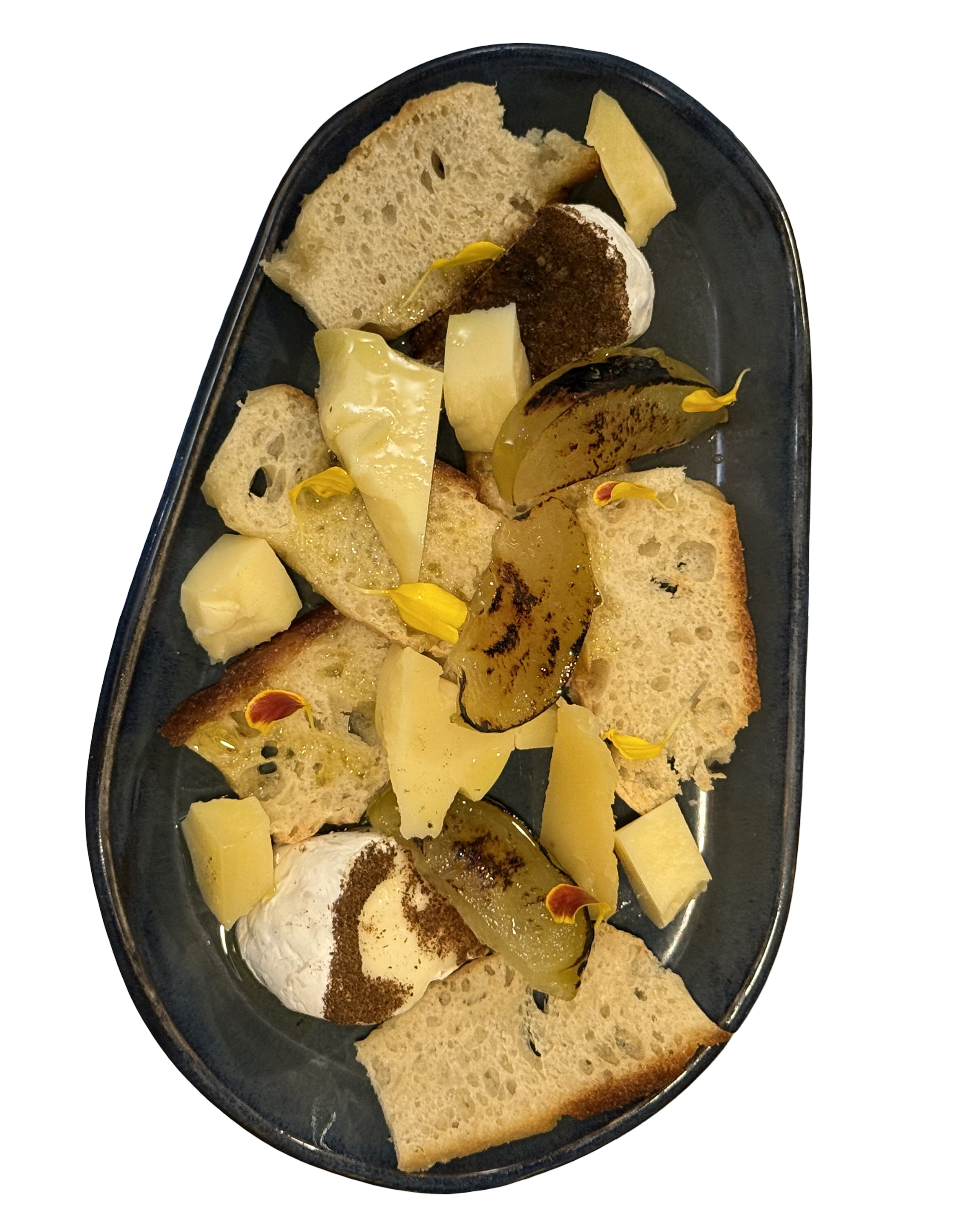Platito de los mejores quesos cordobeses, aceite de oliva y frutas caramelizadas, acompañados de nuestra panificación del día.